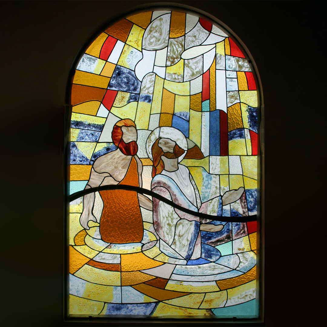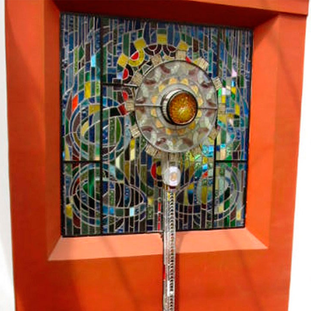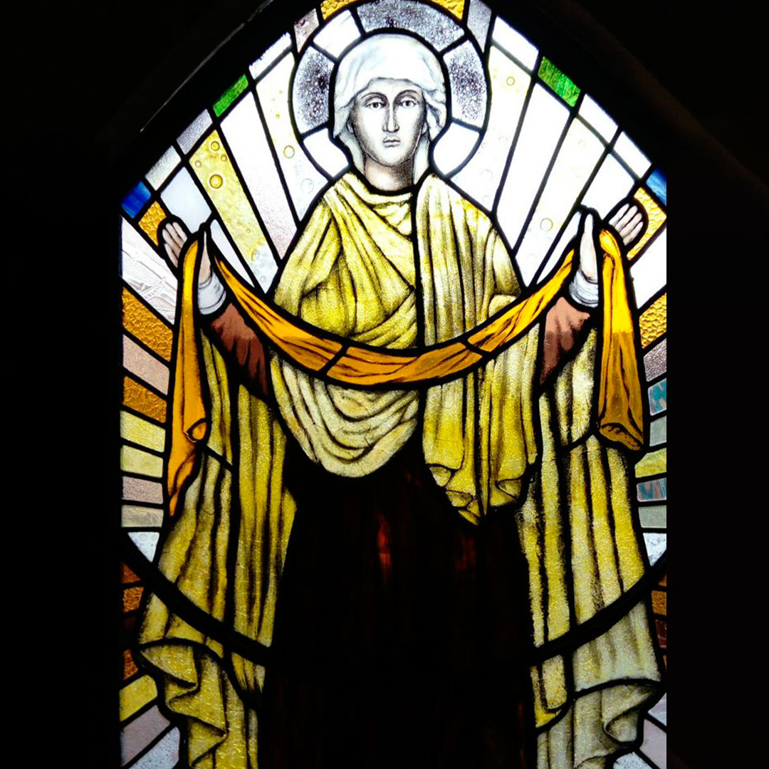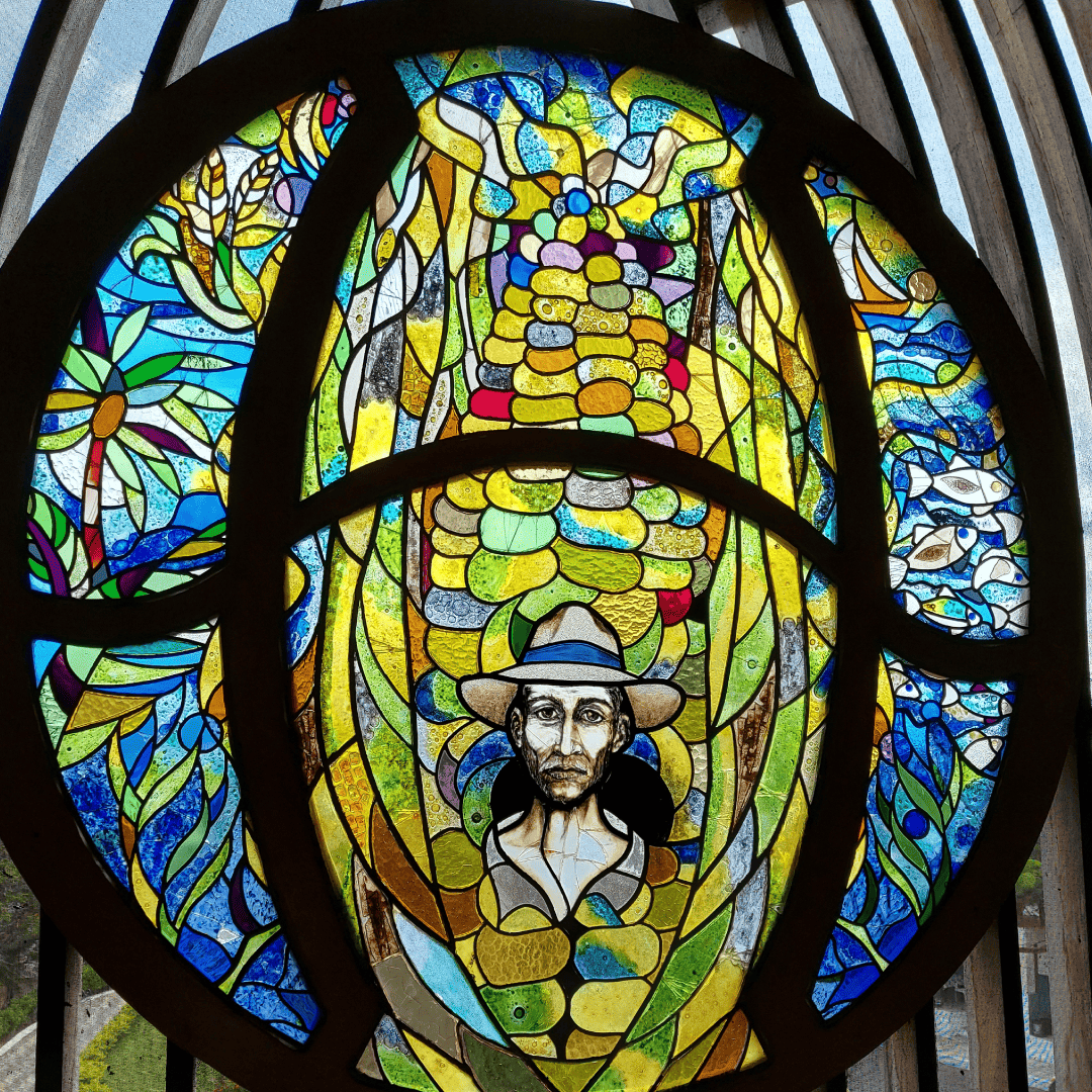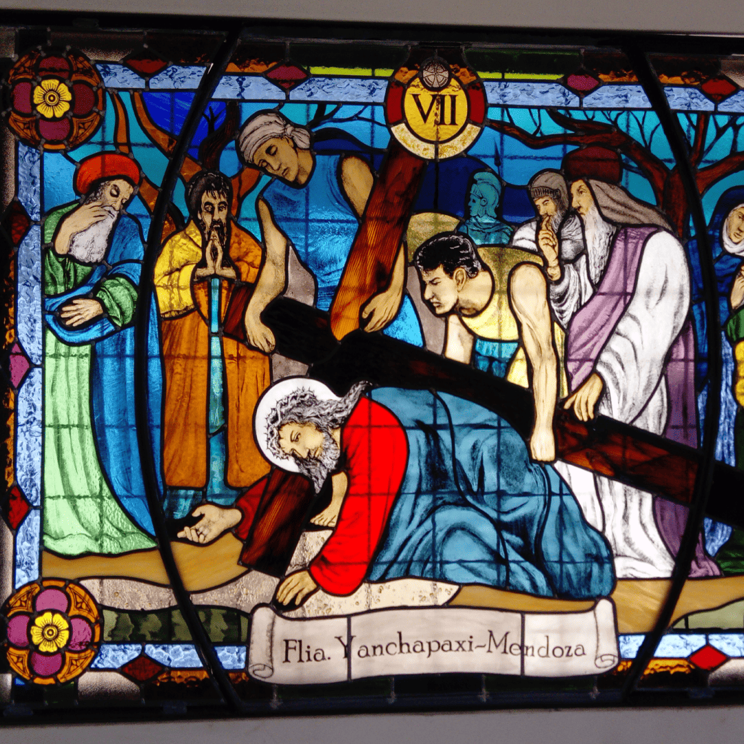 Una amplia experiencia en la elaboración de vitrales con escenas religiosas que incluyen imágenes. Este tipo de vitral se basa en la antigua técnica europea de la grisaglia al fuego, para la definición de rostros, manos y demás detalles.
