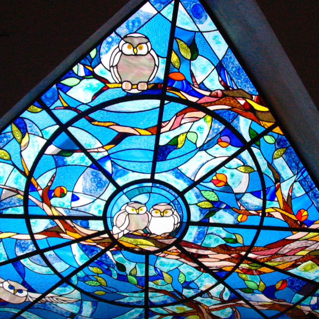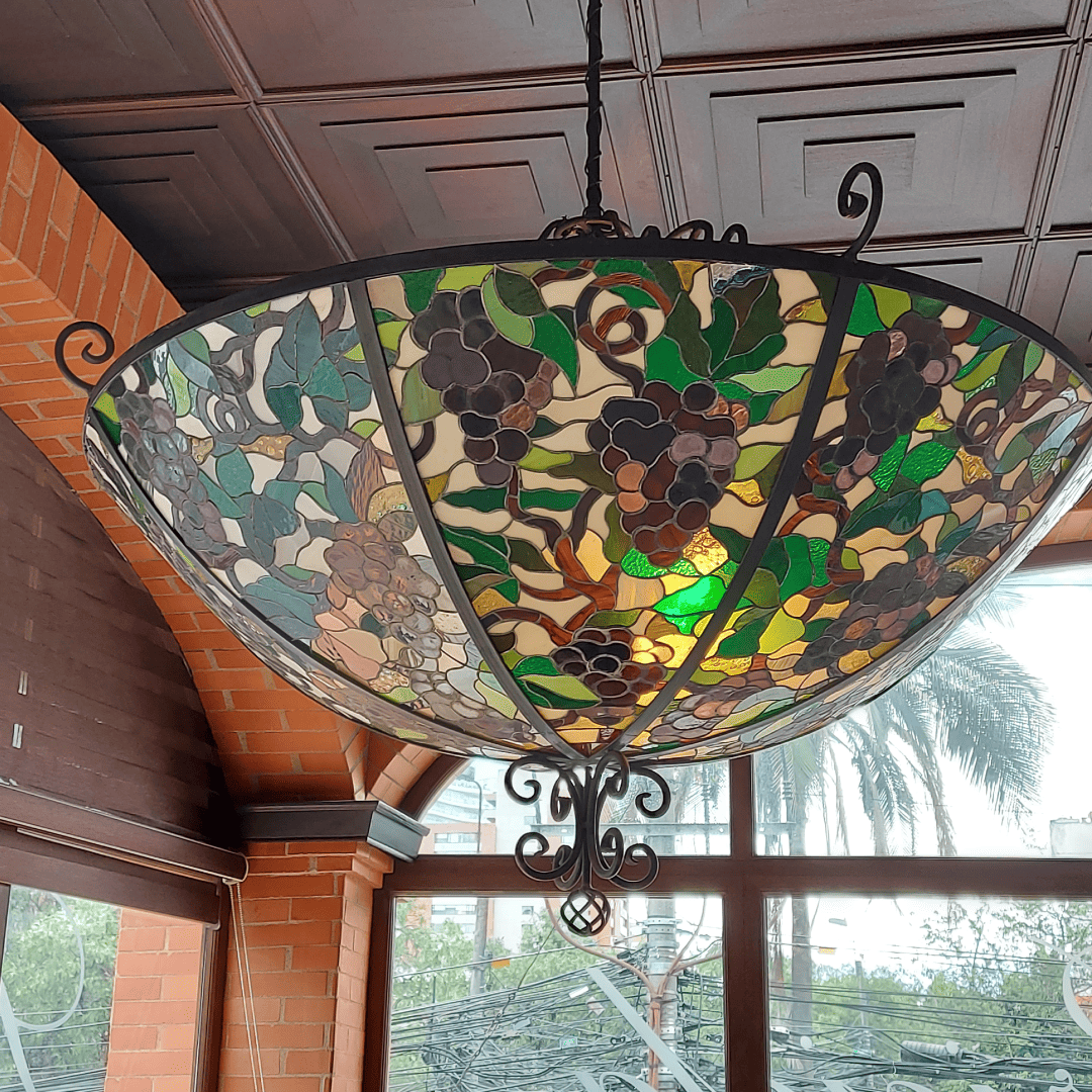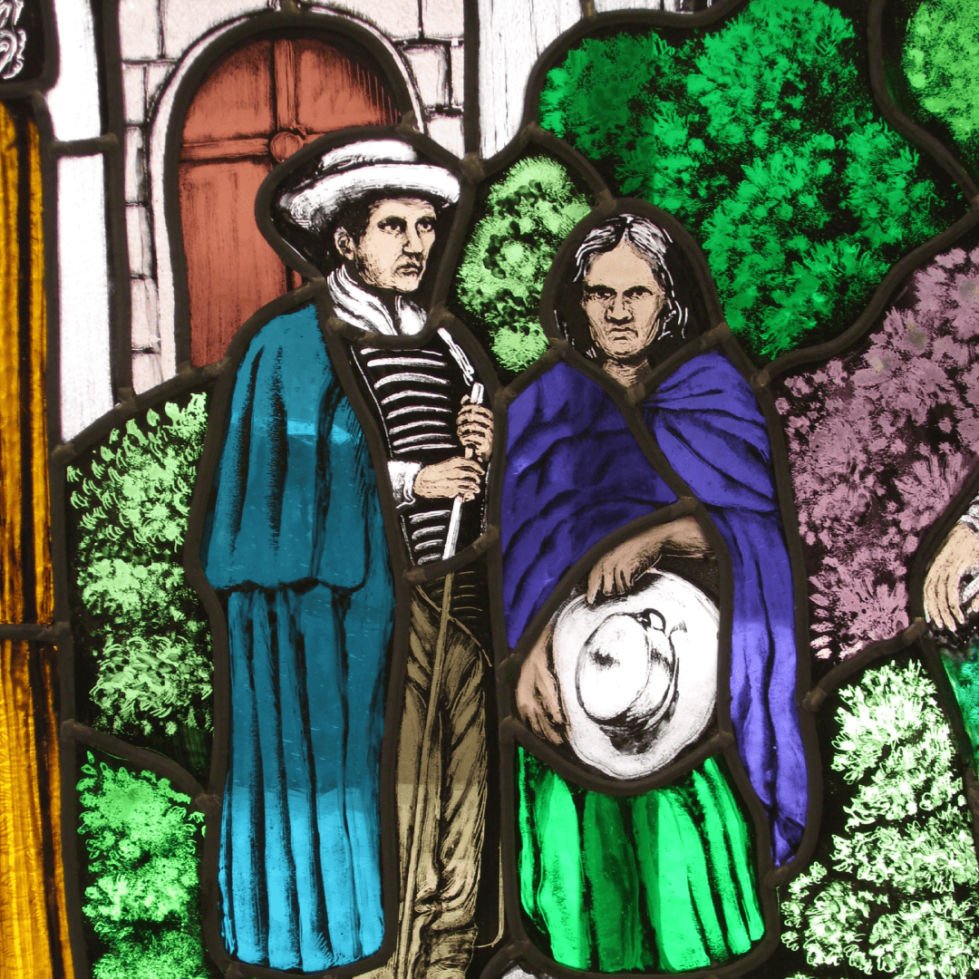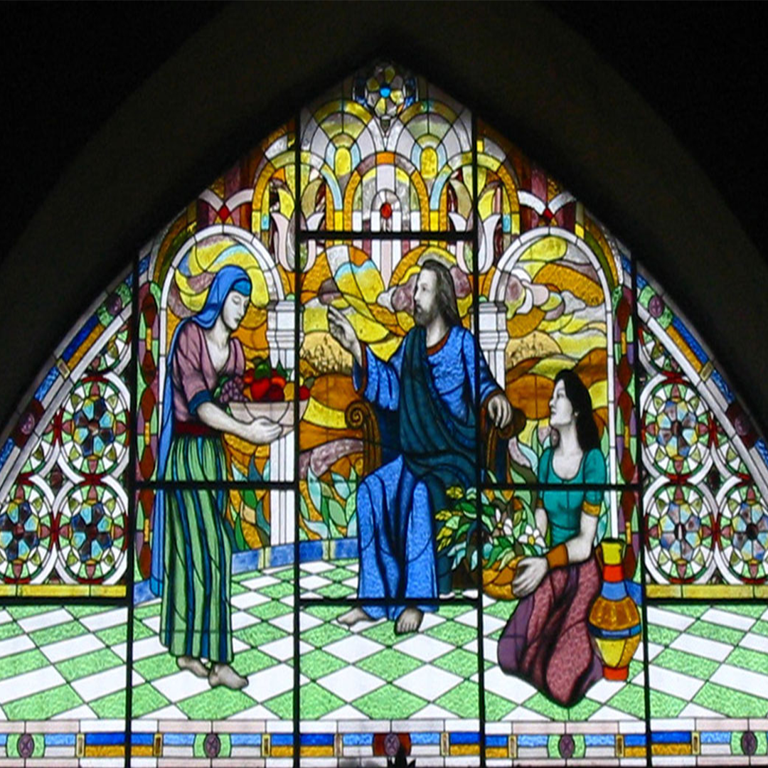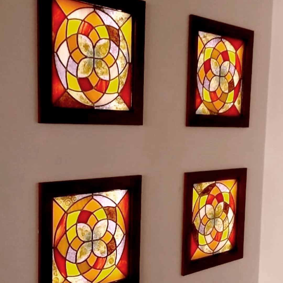 Una amplia experiencia en la elaboración de vitrales con escenas religiosas que incluyen imágenes. Este tipo de vitral se basa en la antigua técnica europea de la grisaglia al fuego, para la definición de rostros, manos y demás detalles.