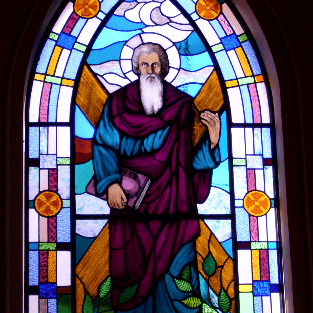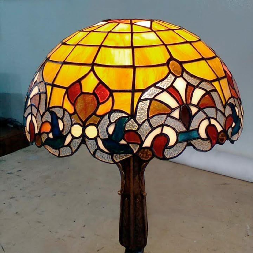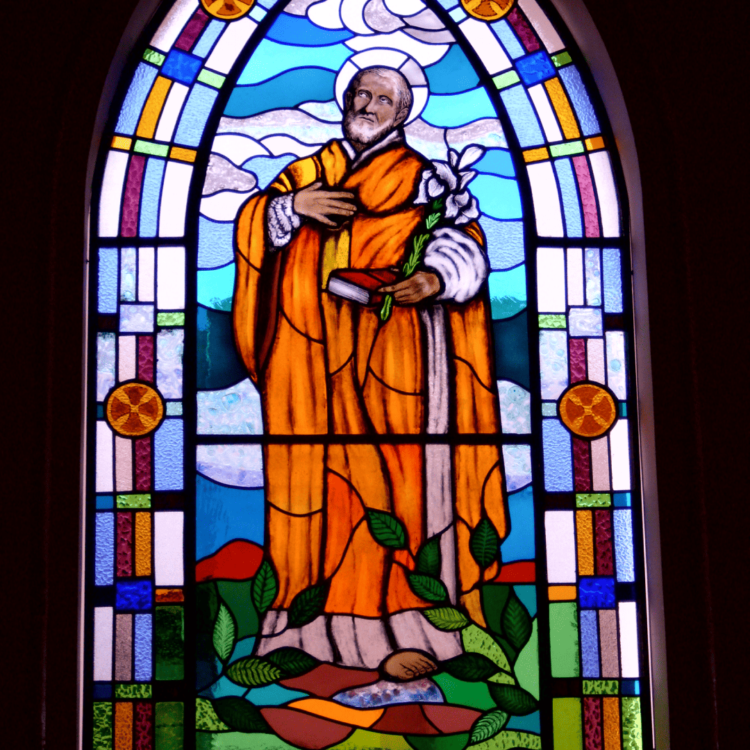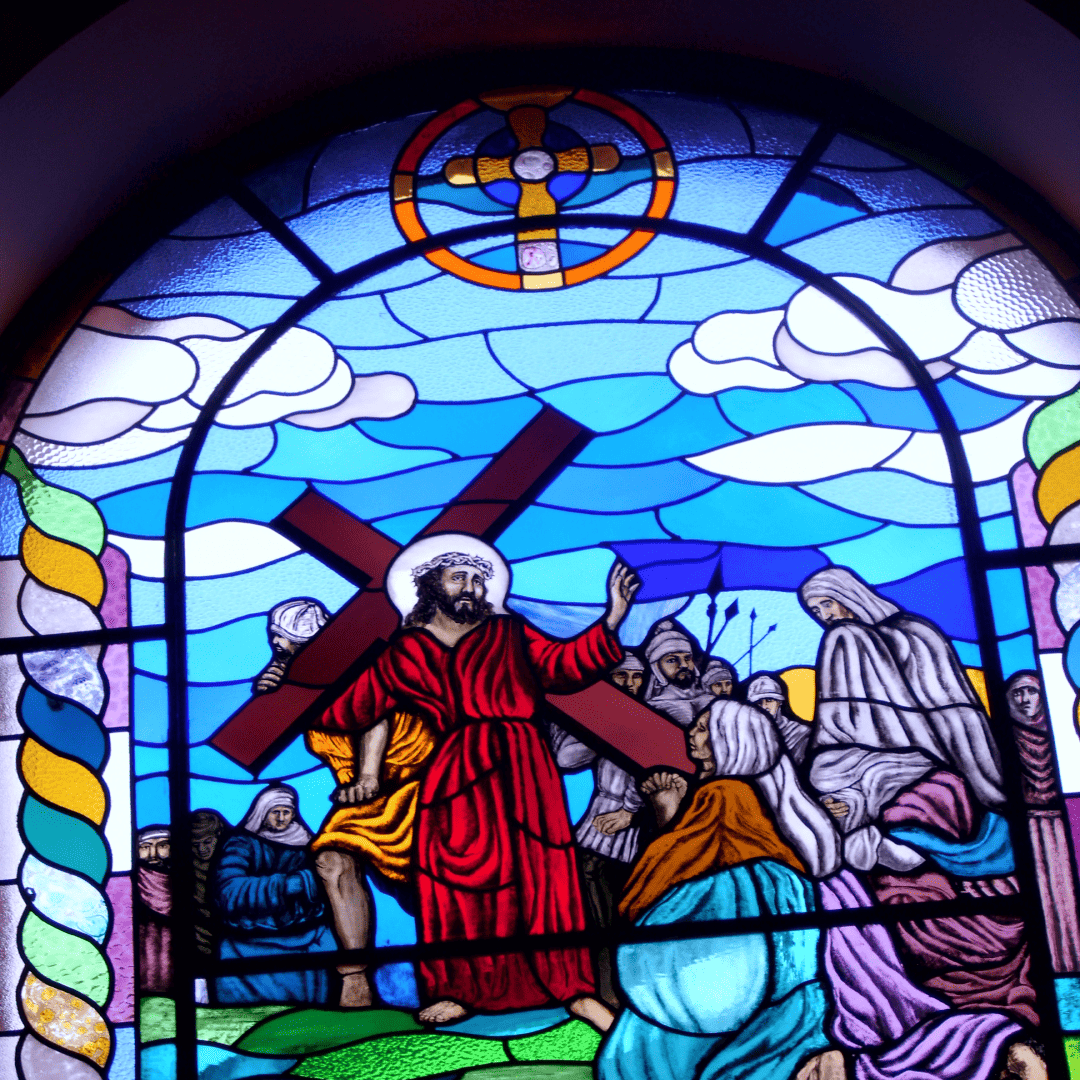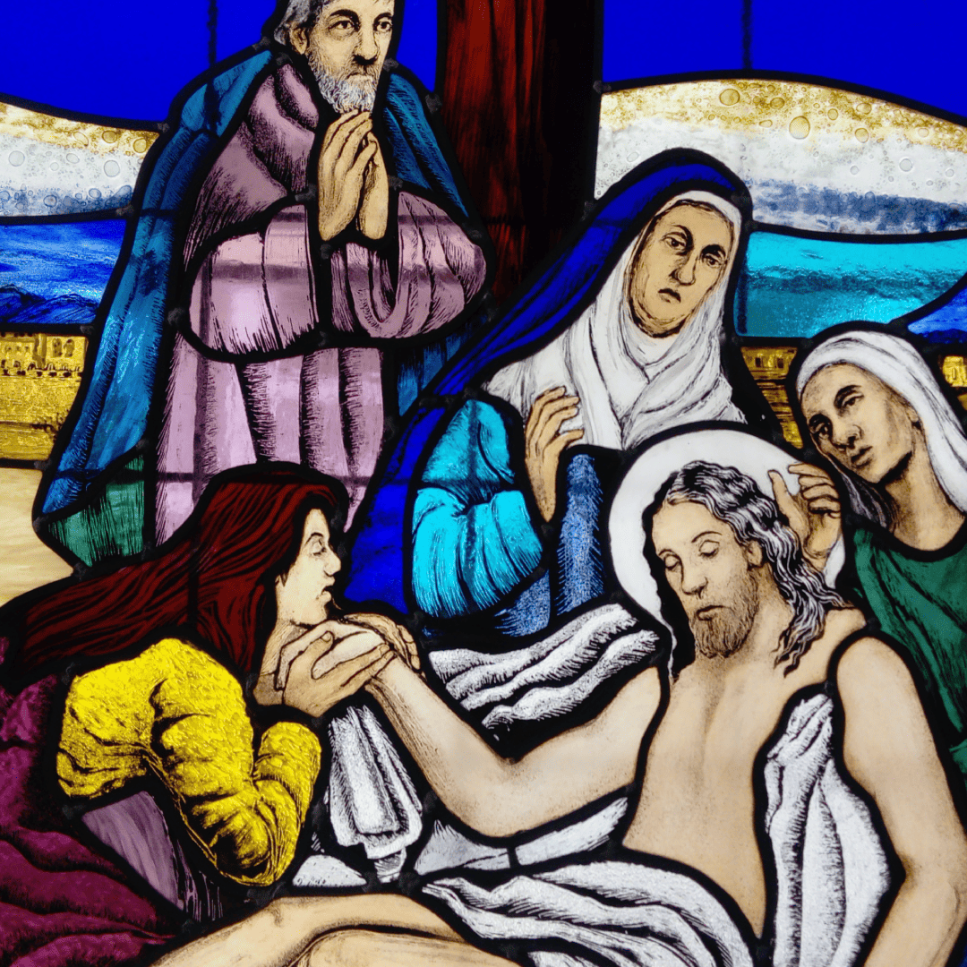 Una amplia experiencia en la elaboración de vitrales con escenas religiosas que incluyen imágenes. Este tipo de vitral se basa en la antigua técnica europea de la grisaglia al fuego, para la definición de rostros, manos y demás detalles.