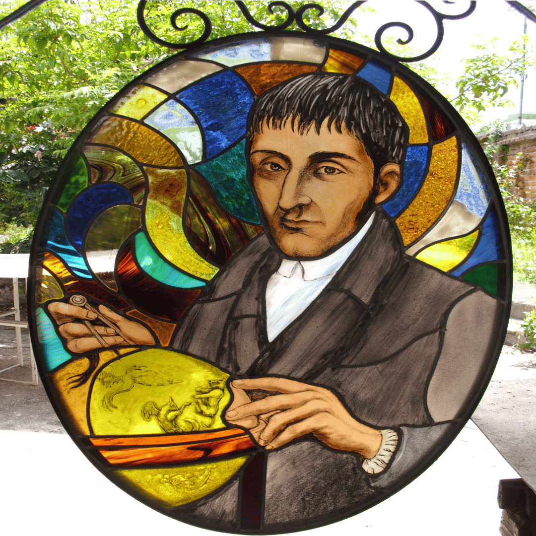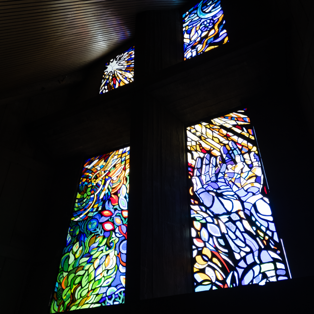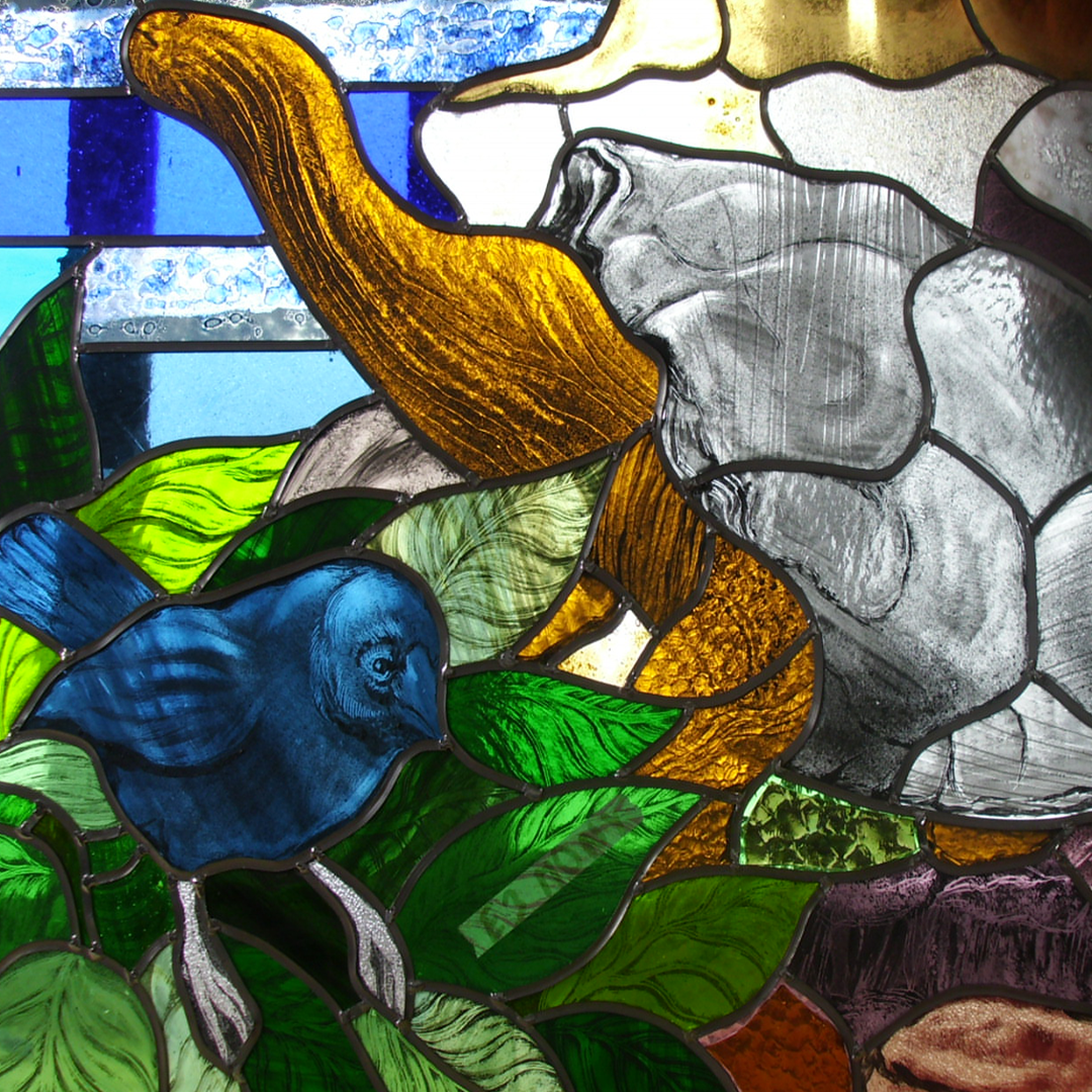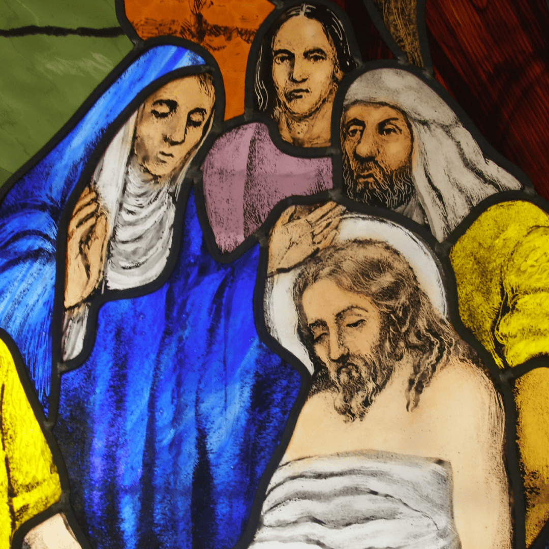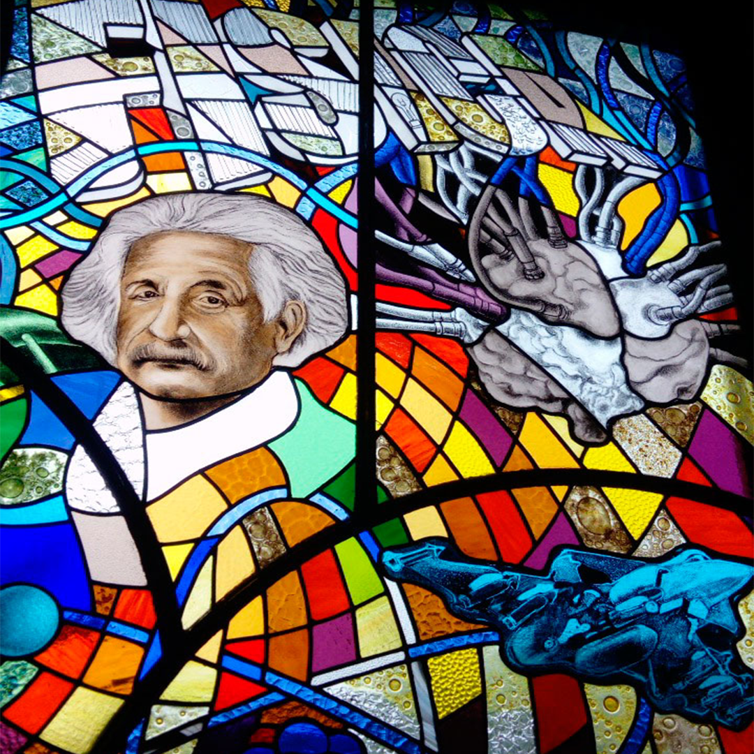 Una amplia experiencia en la elaboración de vitrales con escenas religiosas que incluyen imágenes. Este tipo de vitral se basa en la antigua técnica europea de la grisaglia al fuego, para la definición de rostros, manos y demás detalles.