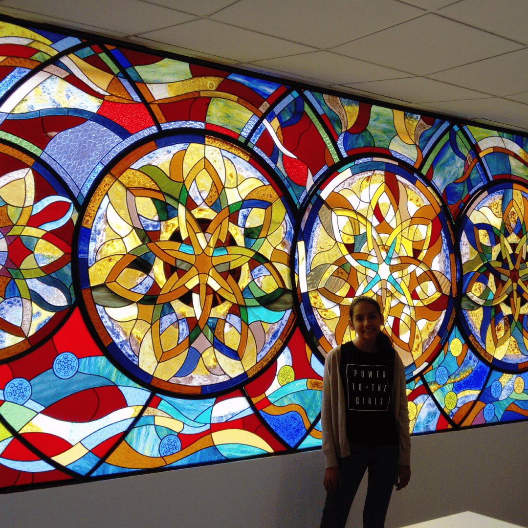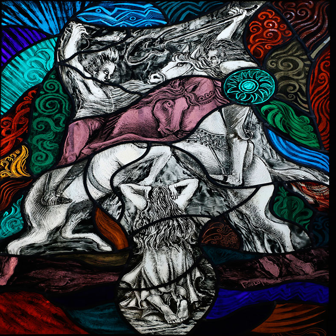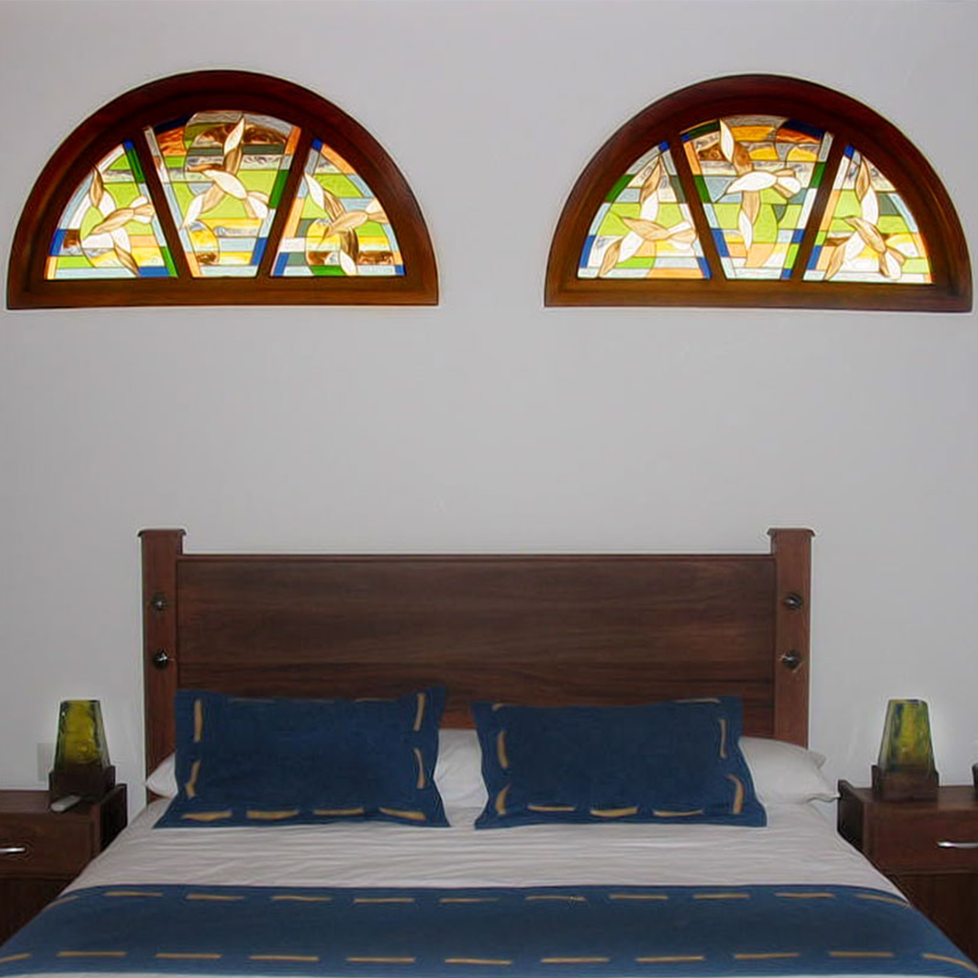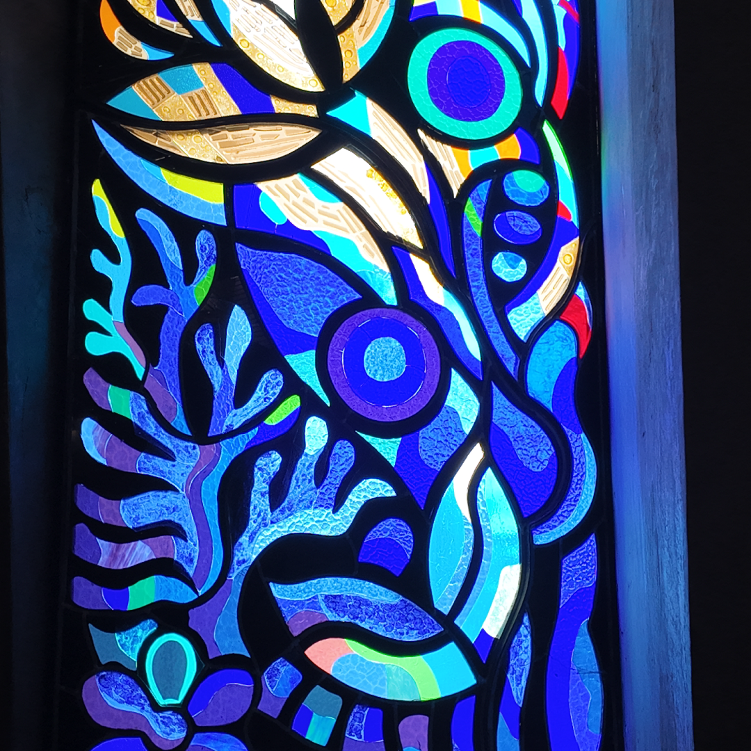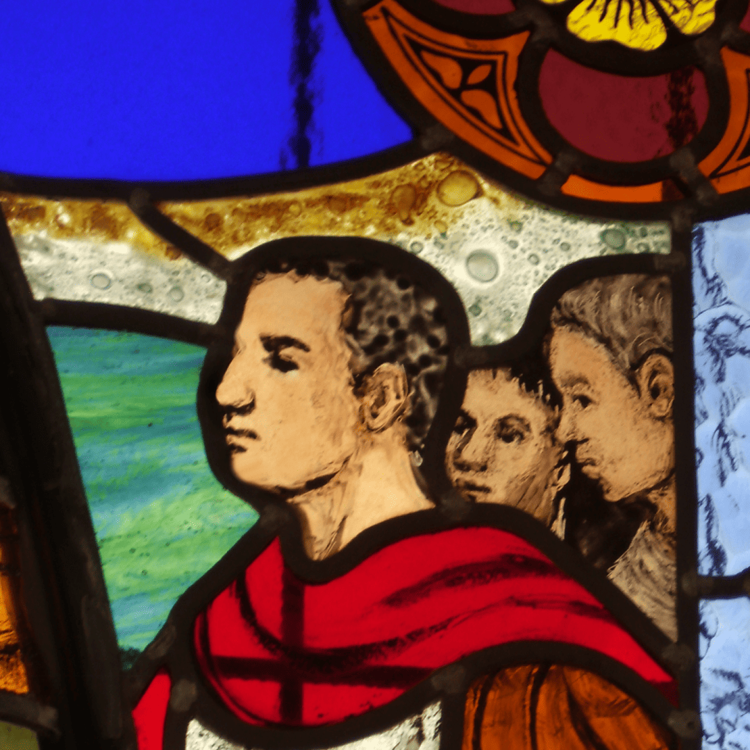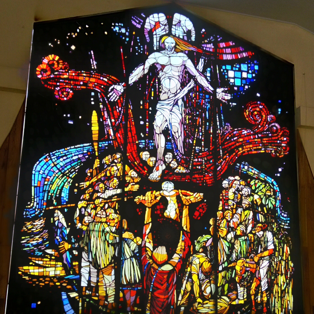 Una amplia experiencia en la elaboración de vitrales con escenas religiosas que incluyen imágenes. Este tipo de vitral se basa en la antigua técnica europea de la grisaglia al fuego, para la definición de rostros, manos y demás detalles.