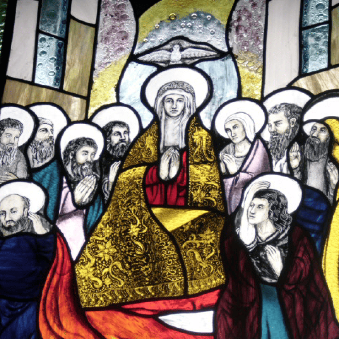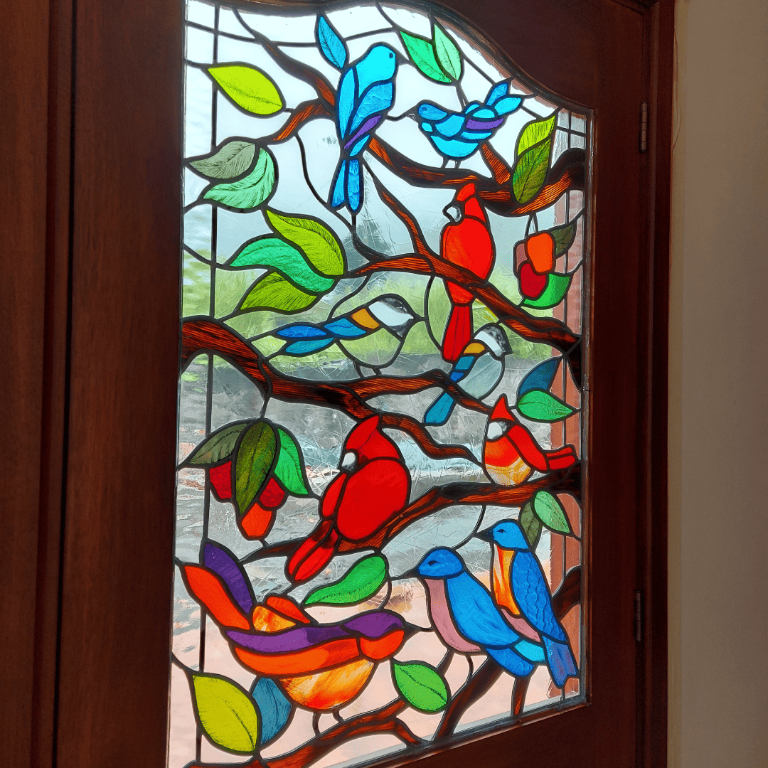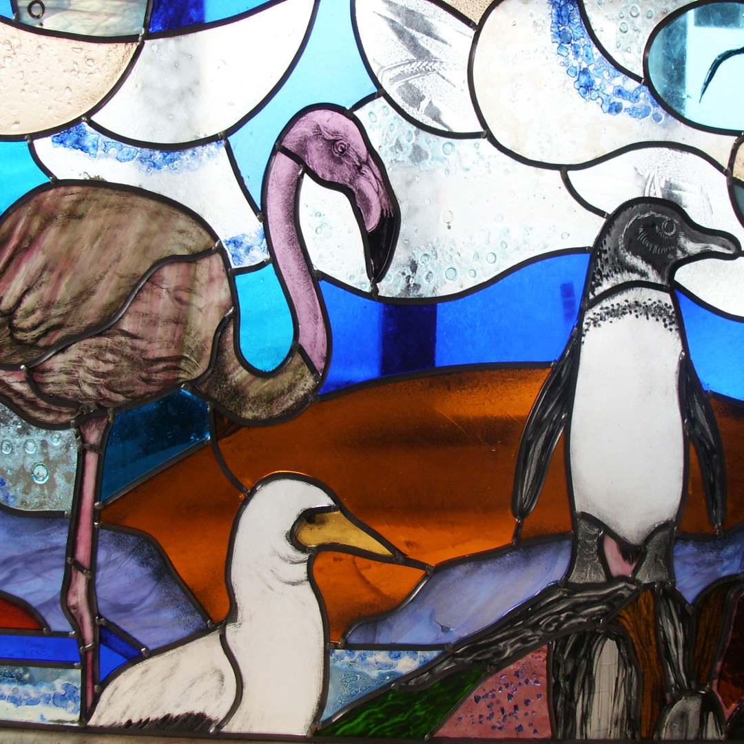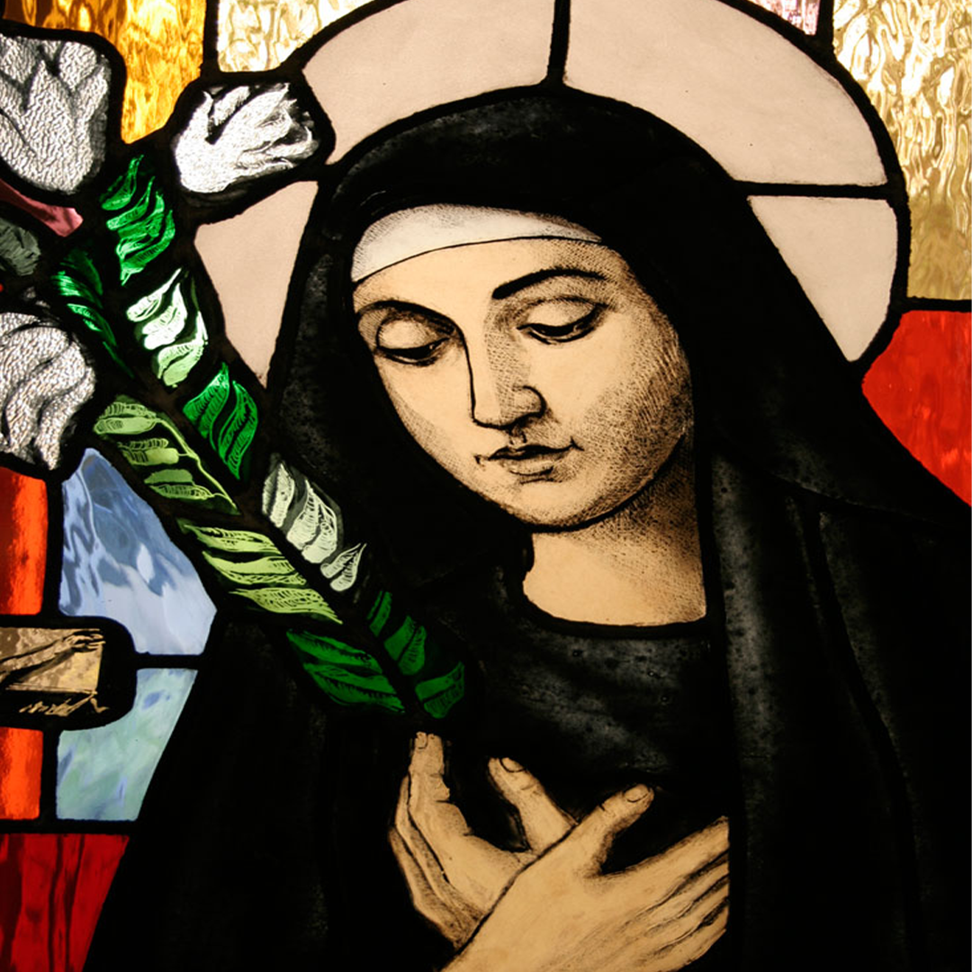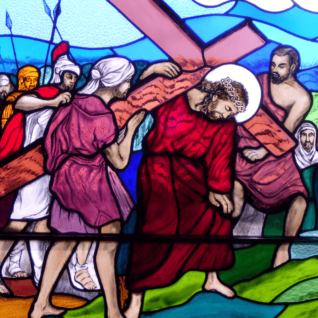 Una amplia experiencia en la elaboración de vitrales con escenas religiosas que incluyen imágenes. Este tipo de vitral se basa en la antigua técnica europea de la grisaglia al fuego, para la definición de rostros, manos y demás detalles.