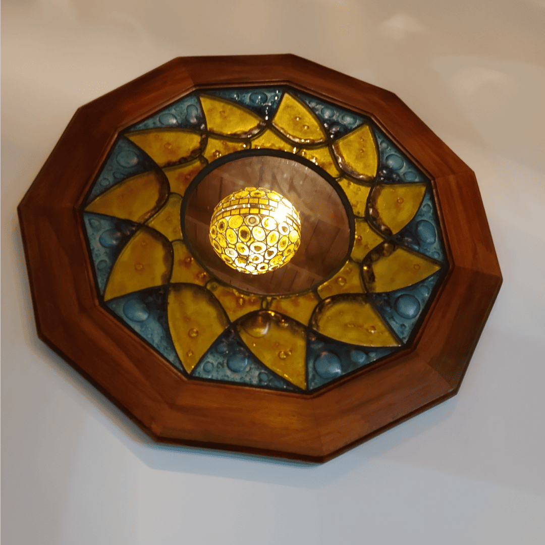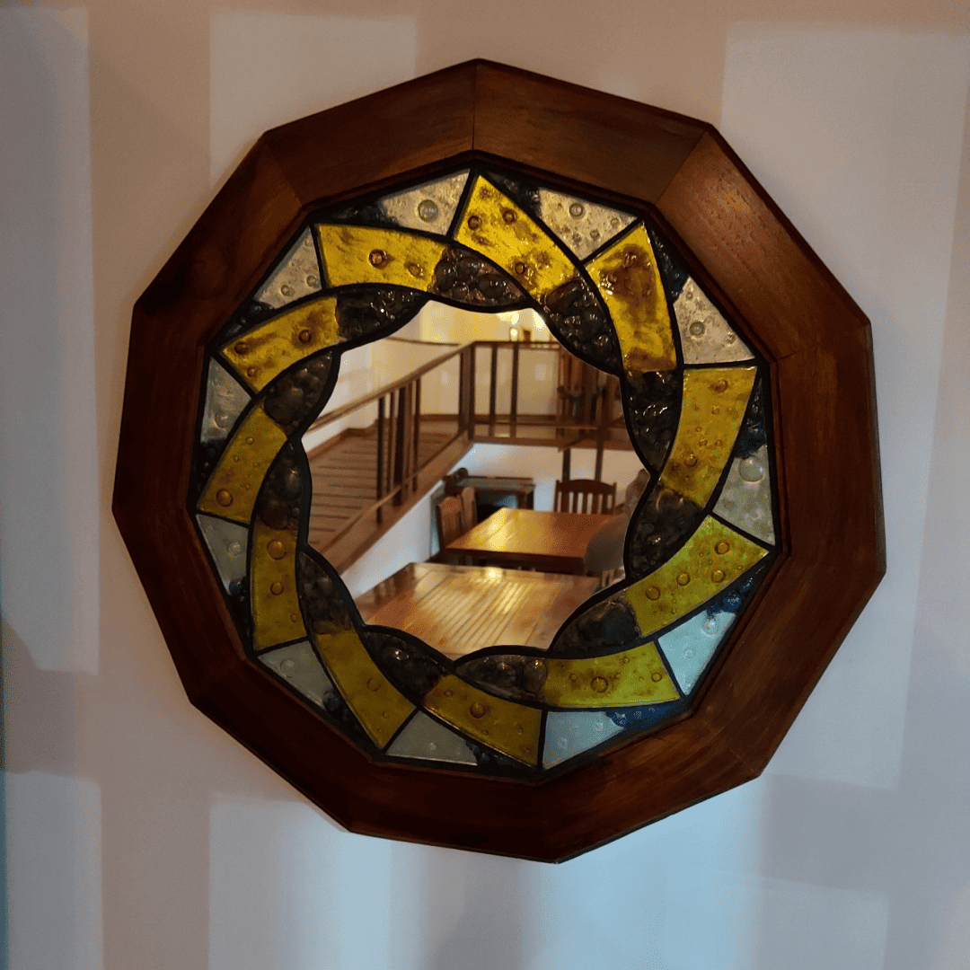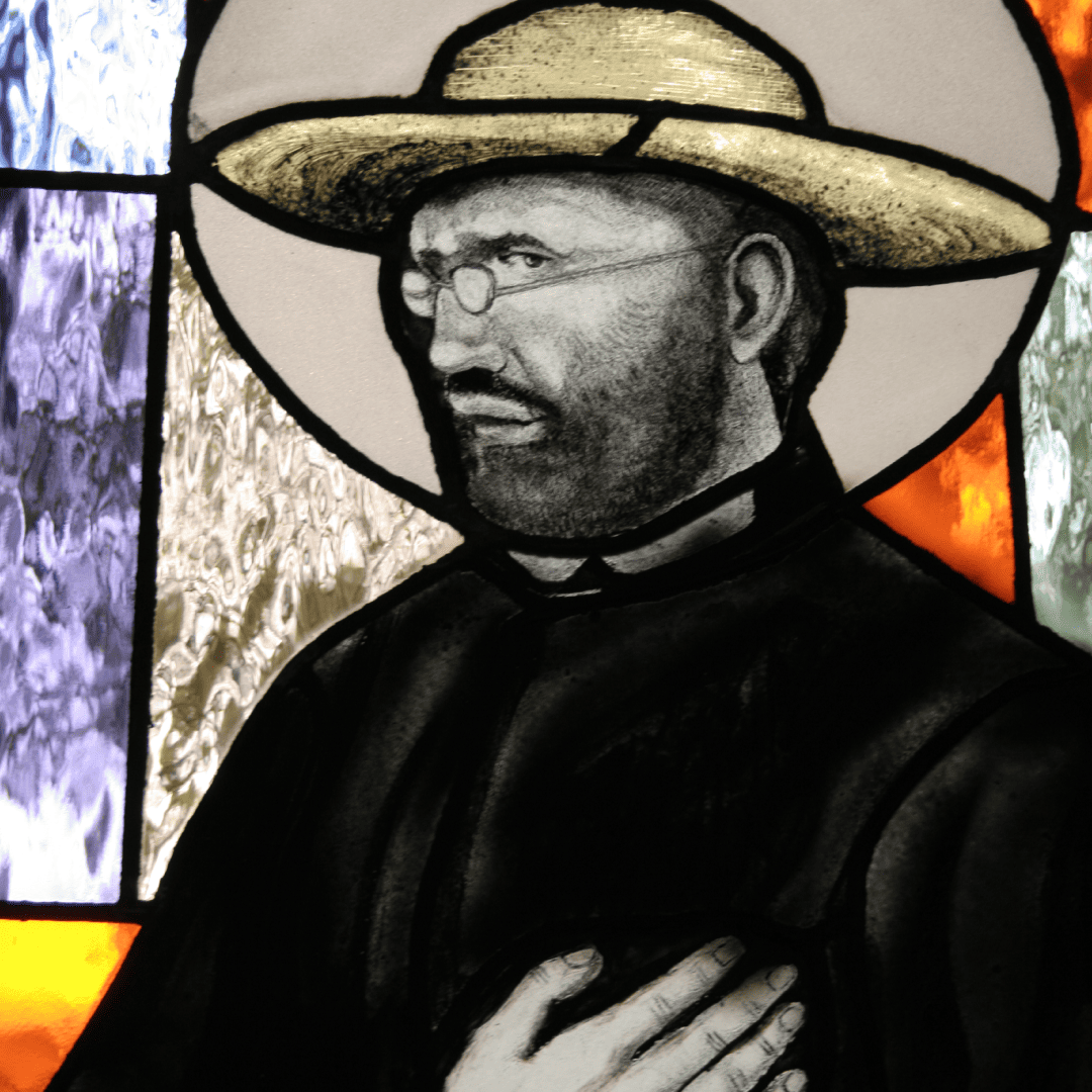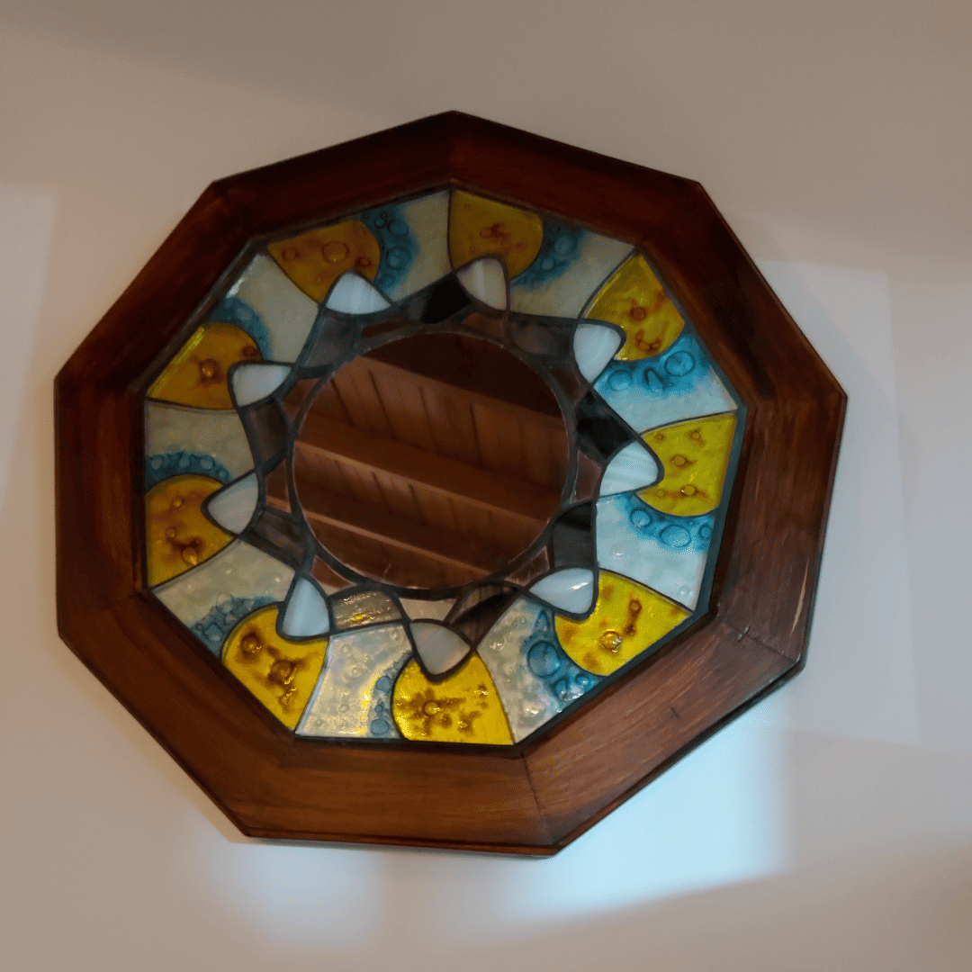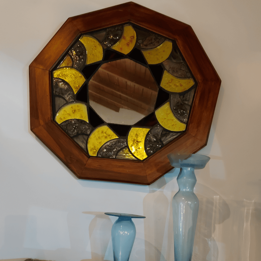 Una amplia experiencia en la elaboración de vitrales con escenas religiosas que incluyen imágenes. Este tipo de vitral se basa en la antigua técnica europea de la grisaglia al fuego, para la definición de rostros, manos y demás detalles.