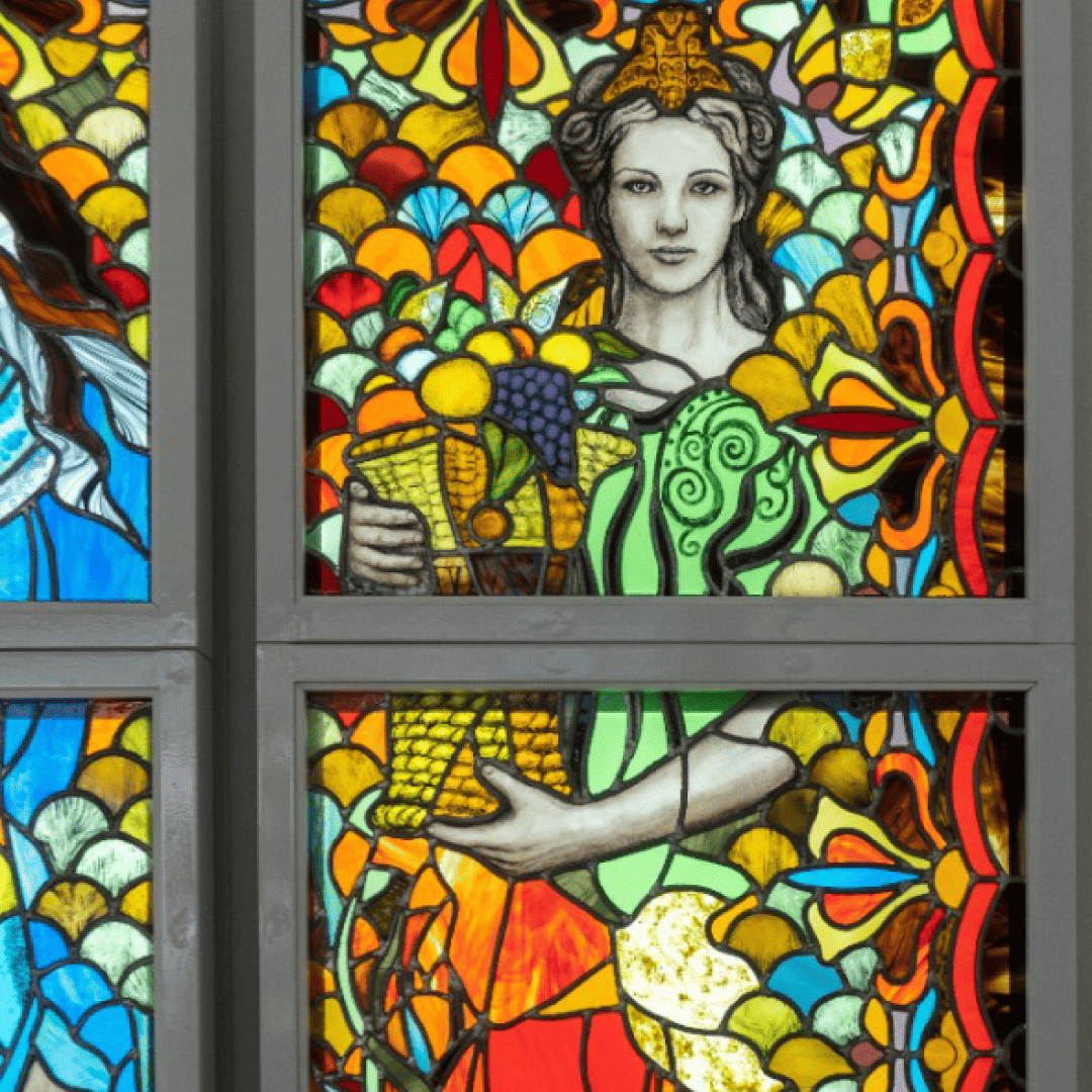 Instituciones Educativas, Culturales, Financieras encuentran en el vitral un medio para representar sus personajes, símbolos y gestas.